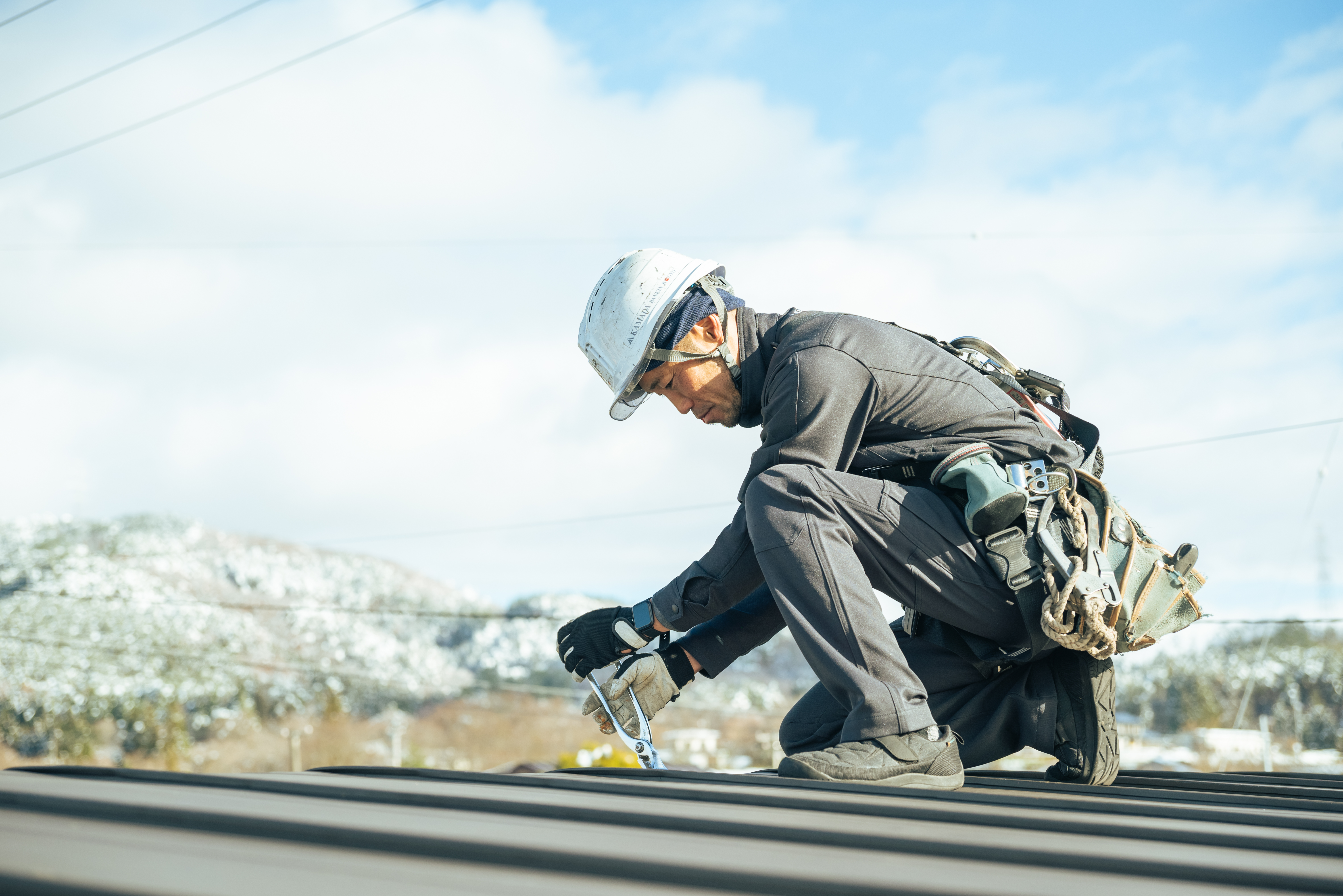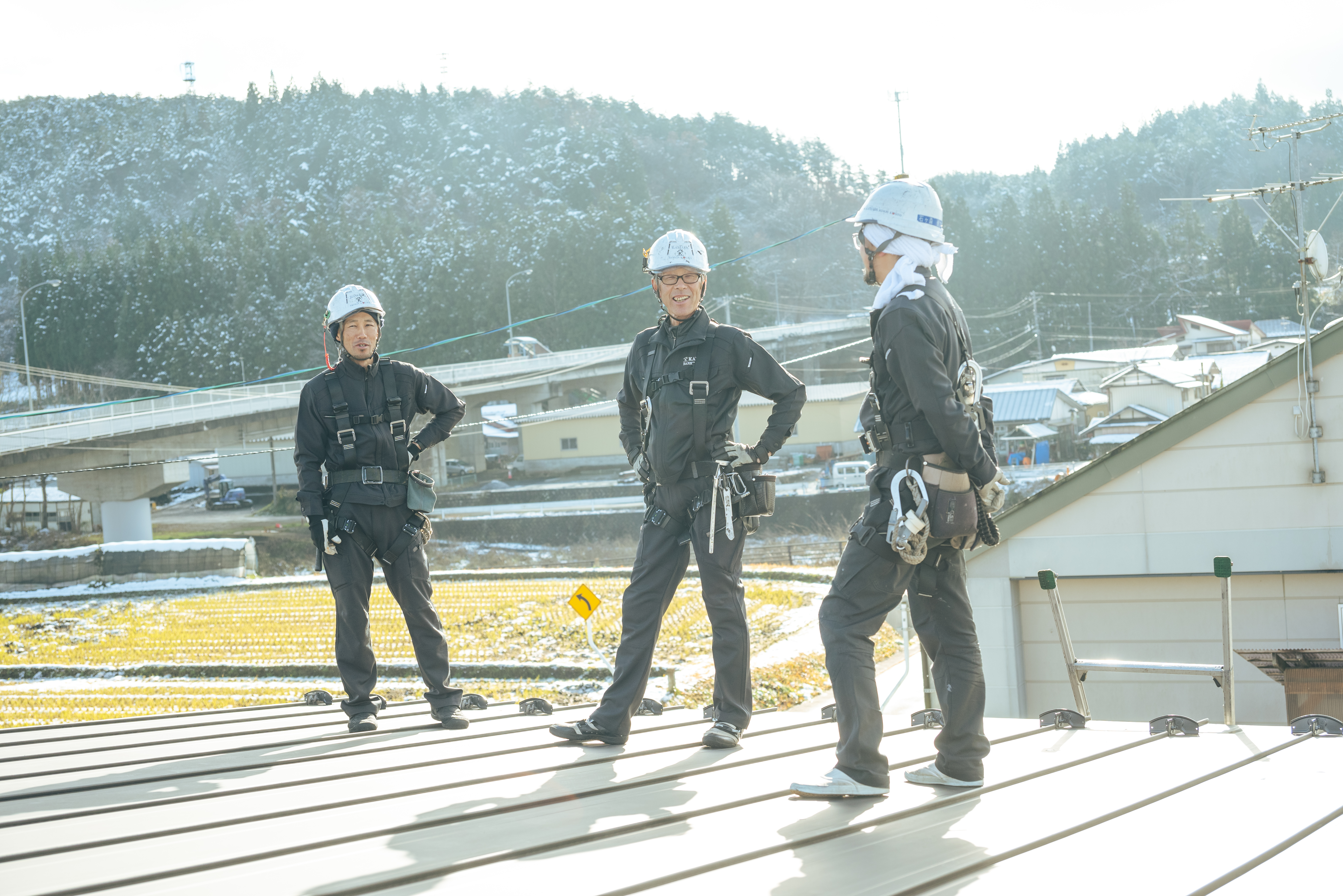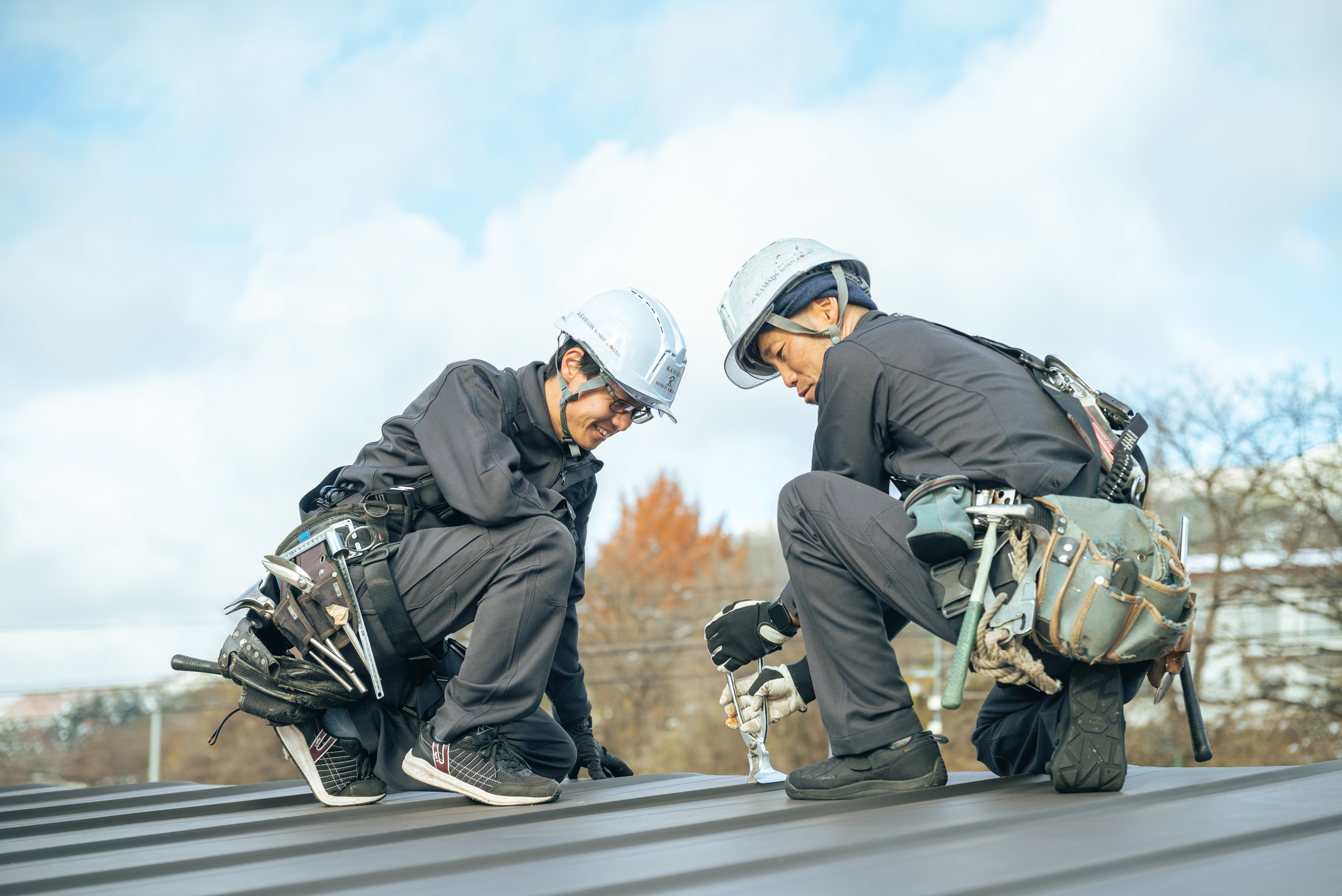 弊社は地域に根差し、お客様の大切な建物を風雨から守る板金工事の会社。屋根や外壁などの施工を通じて建物に機能性と美しさを提供し、安心安全な暮らしを支える…とてもやりがいのある仕事です。