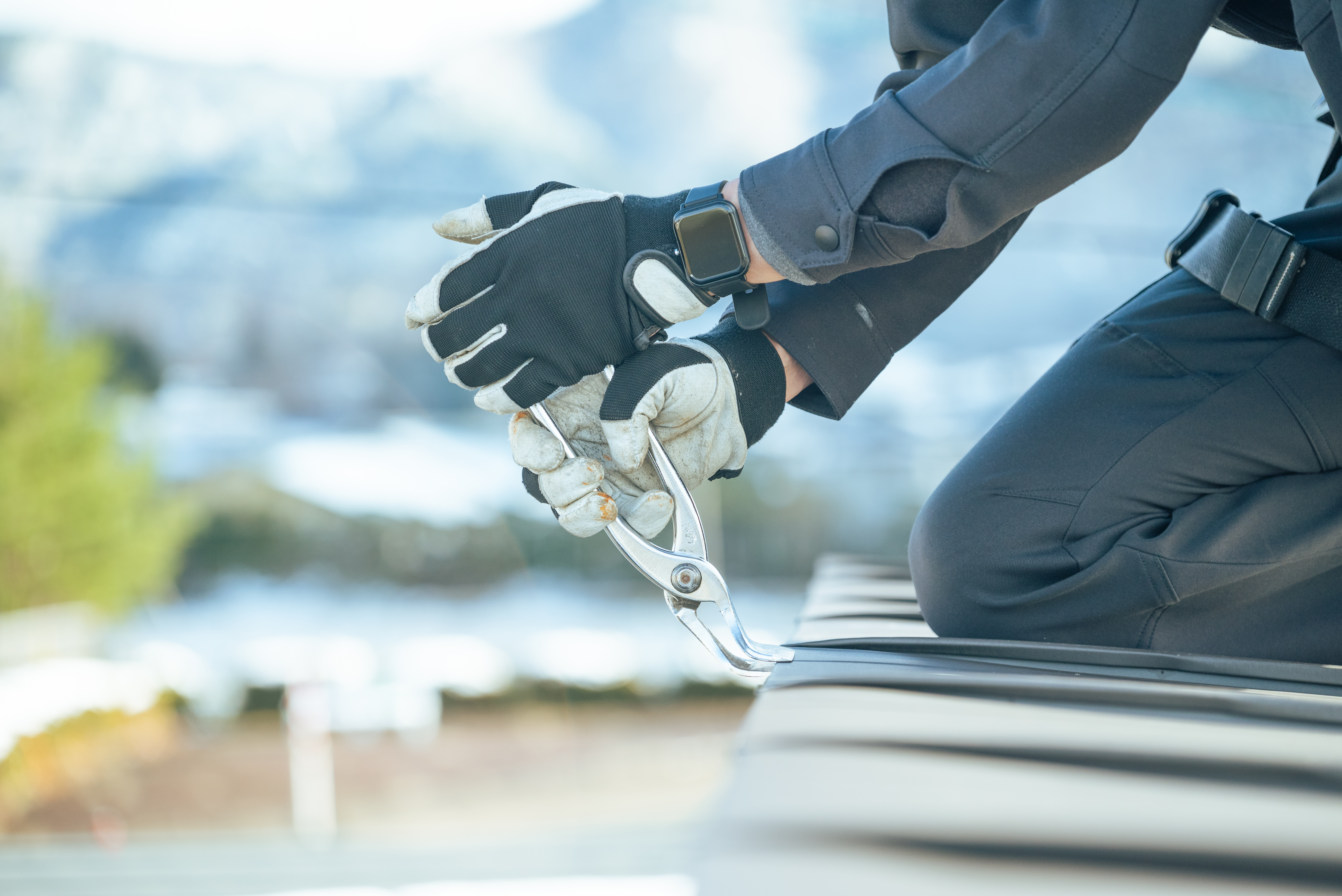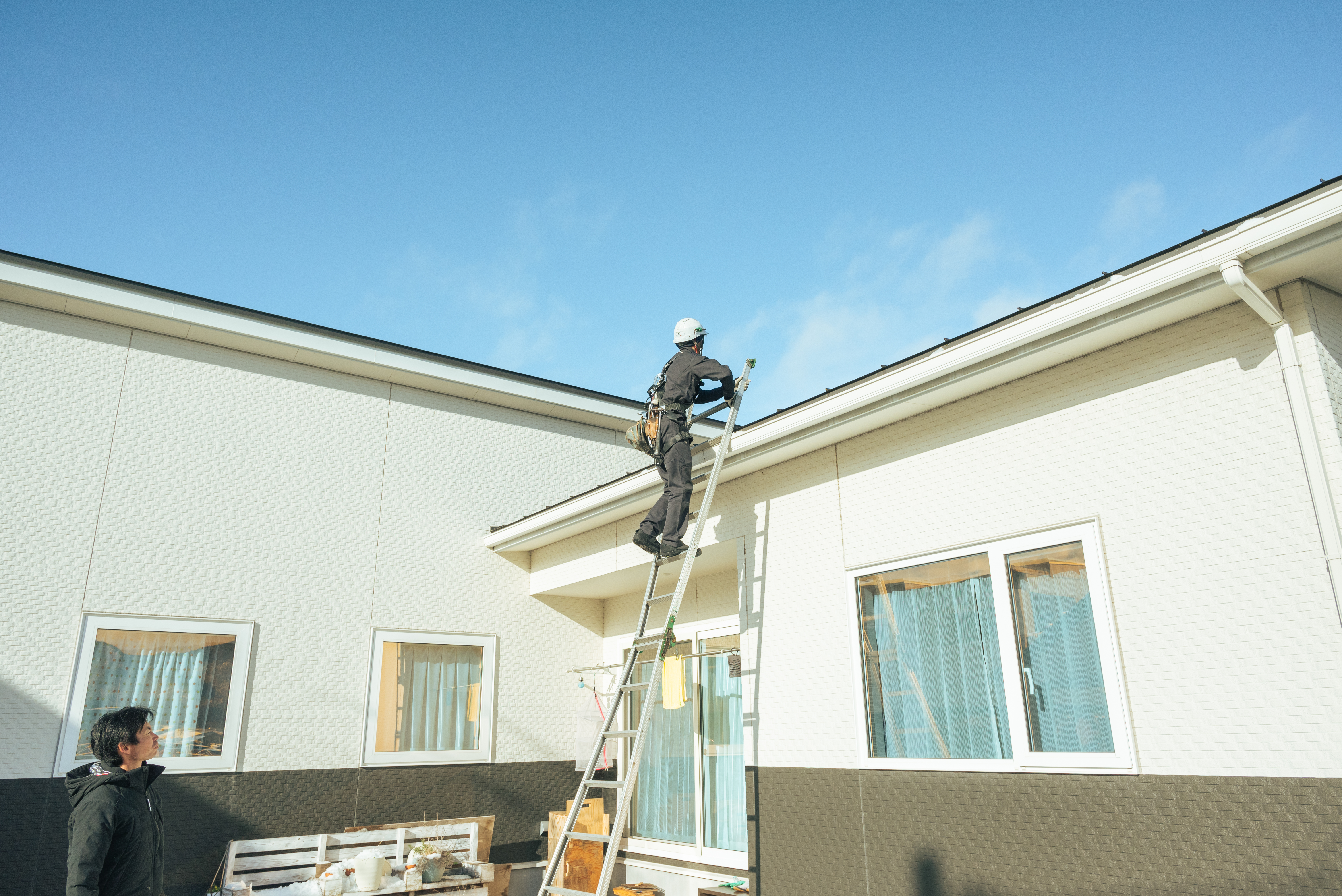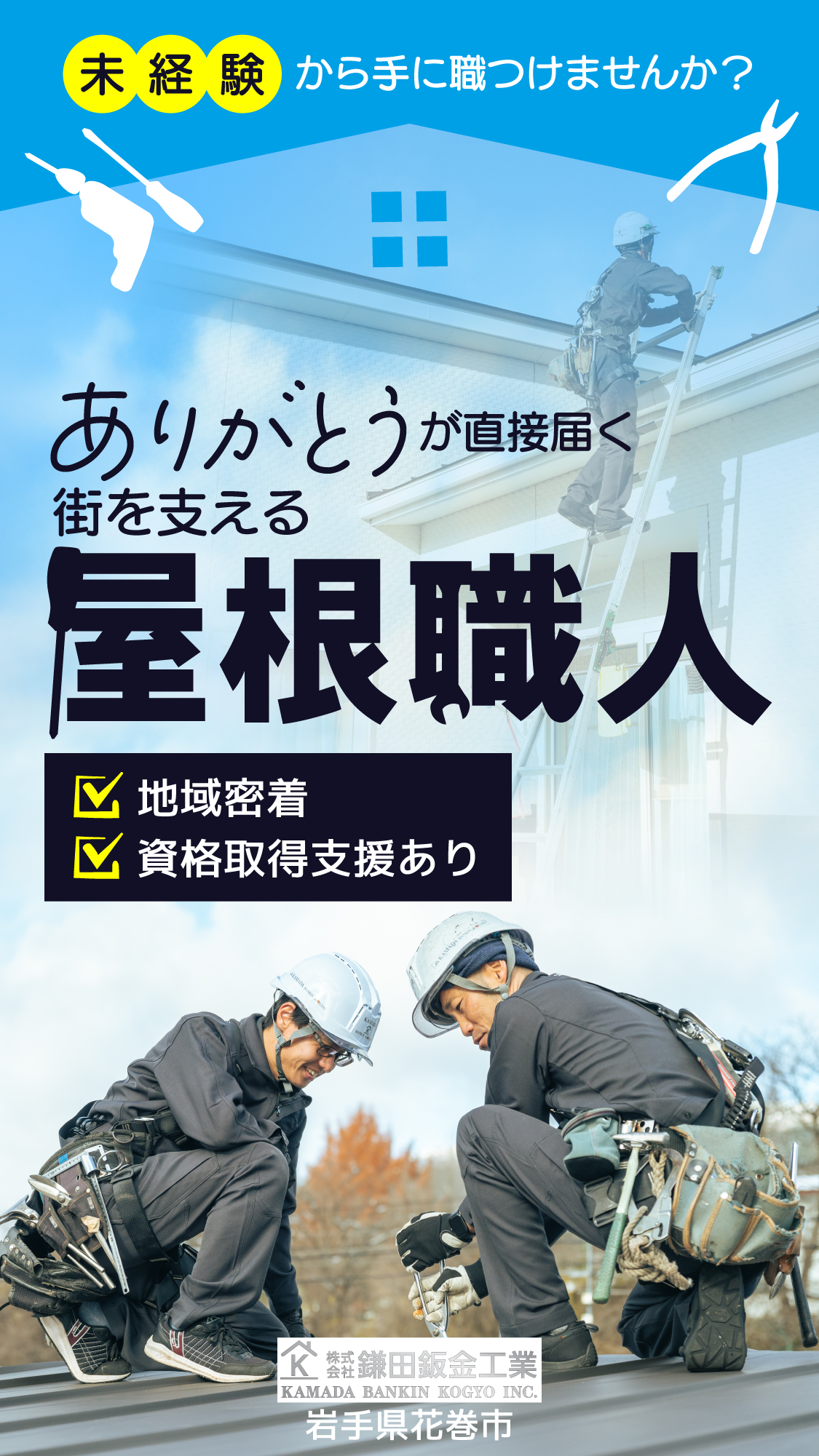 弊社は地域に根差し、お客様の大切な建物を風雨から守る板金工事の会社。屋根や外壁などの施工を通じて建物に機能性と美しさを提供し、安心安全な暮らしを支える…とてもやりがいのある仕事です。